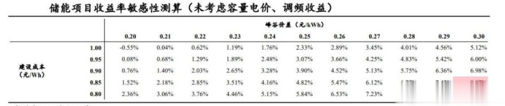 根据测算,假设储能项目投资0.9元/Wh,电能量市场峰谷价差0.3元/kWh,一个100MW/400MWh的储能电站年充放电次数300天,项目收益率大约6.5%。